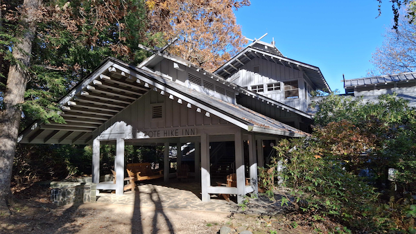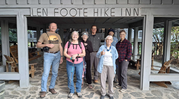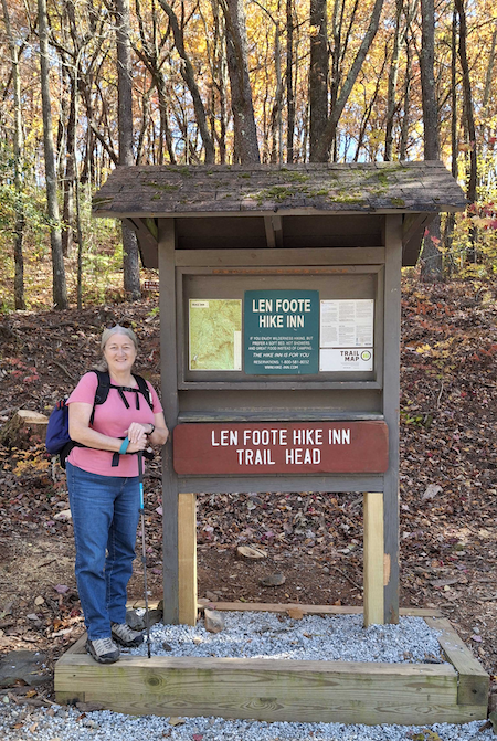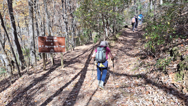 The Hike Inn is a backcountry lodge operated in the Amicalola Falls State Park. The staff hauls in supplies along a gravel road, but all guests have to hike in. There are small, individual rooms with bunks, ceiling radiant heat, hot showers, and the guests are provided dinner and breakfast. I think all but one of us had stayed there before. You can of course do a day hike there just to see what it looks like, but we all made reservations to spend one night.