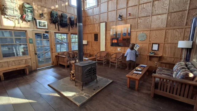 I had taken extra lighting (two headlamps, a flashlight and extra batteries) in anticipation of the Rosses being caught in the dark. So, at 6:35, I headed down the trail to check on them. What I found after a 25-minute hike down the trail was that there was a person on each side of Rosemary holding her arms as she walked with trekking poles, plus others providing additional lighting. Rosemary wore her head-lamp and Terry led the way. At one point, the California dude decided it would be faster to carry her, so we did that for maybe 15 minutes before he realized that was no faster than she could walk, plus it risked dropping her, so she reverted to walking the rest of the way, arriving at the inn near 8:00, very tired but not exhausted, or so it seemed to me.
