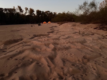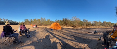 Five of the remaining GWS river rats paddled 24 miles on the Oconee from Hwy 280 near Mt Vernon to Bells Ferry landing just above the confluence with the Ocmulgee on Nov 11-13. The trip had to be moved from the Ocmulgee where water levels remained very low and debris from Helene was a concern. The first day was cold with temps below 30 that morning and highs about 55, and we woke up the next morning with ice on our tents and in our water bottles. But the second two days were very nice albeit breezy. No bugs at all! We enjoyed good campfires with plenty of wood both evenings and mornings on huge sandbars. Sightings included lots of deer, including two that swam from our sandbar to the far bank, wild hogs, bald eagle, wood ducks, and the usual turtles, anhingas, kingfishers, and kildeer. Most paddlers were content with the daily paddling distances shorter than on our usual forty-mile three-day trips. Campers were Curt and Irene Cole, Terry Ross, Grant Mangum, and trip leader Joe Mangum.